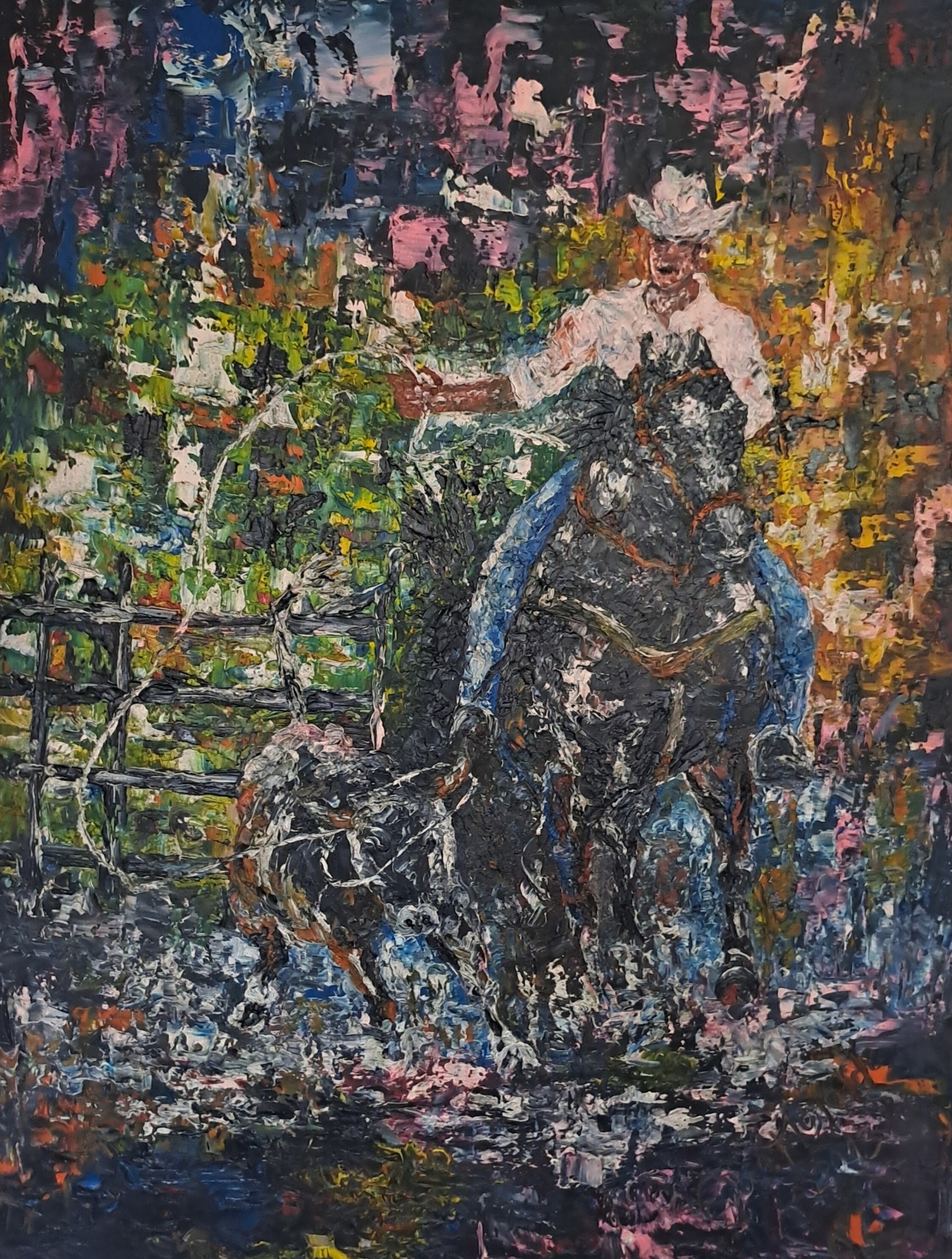 O Ímpeto e a Forma: Na obra do cavalo em movimento, a "arte no caos" manifesta-se através de pinceladas frenéticas e texturas densas que, embora pareçam caóticas isoladamente, convergem para representar a liberdade e o poder indomável da natureza.