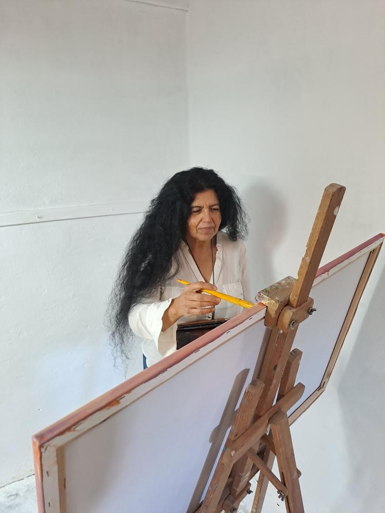 Em pintura a óleo, as obras constroem-se em camadas emocionais, com pinceladas expressivas e matéria visível que traduz pensamento, memória e silêncio. São peças únicas, assinadas, criadas para quem procura arte que não descreve, mas revela — e que permanece pelo que desperta em quem observa.