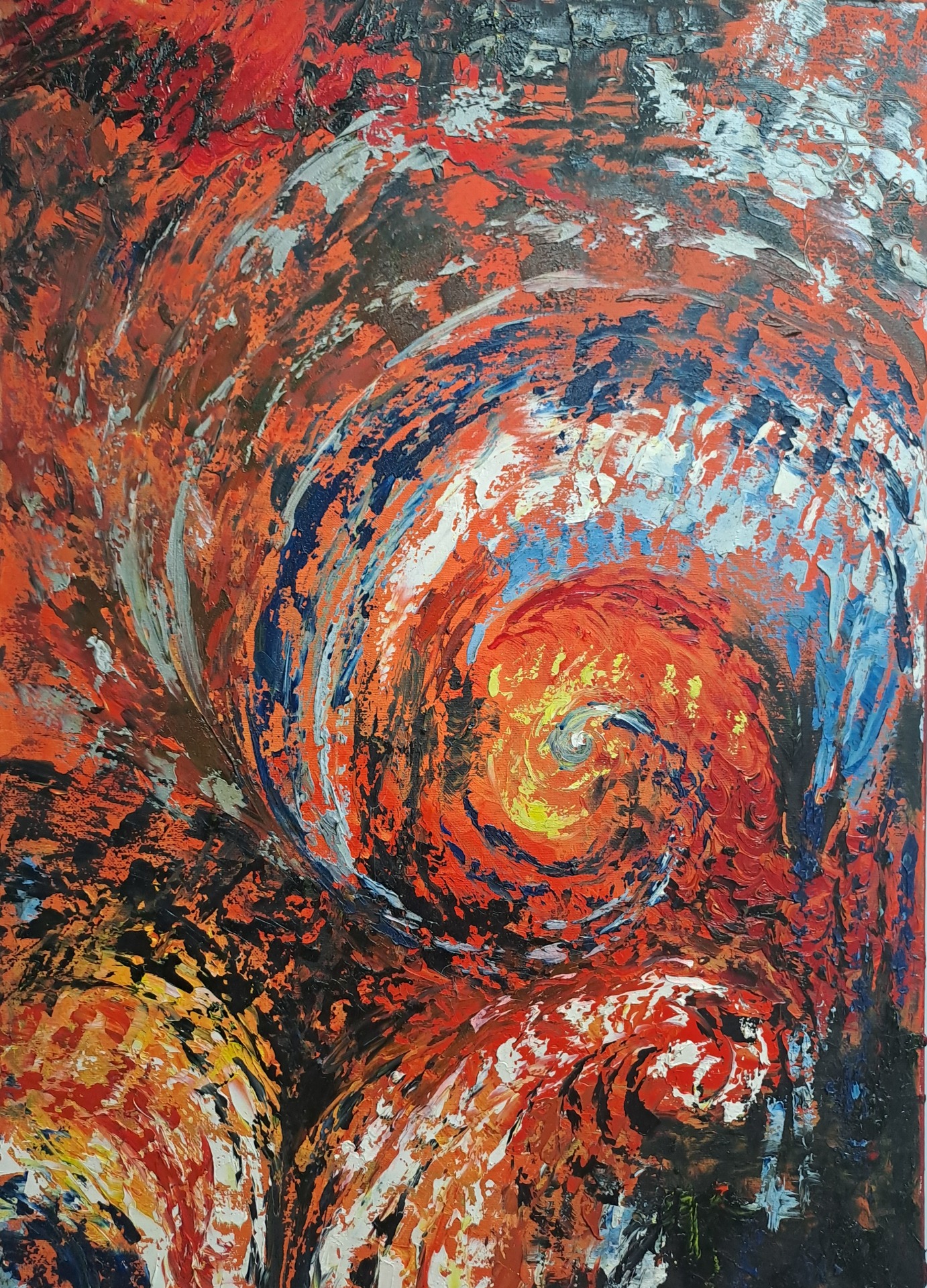 Vórtices de Cor: As composições em espiral funcionam como metáforas visuais para a génese do pensamento. São representações da energia centrípeta onde a mistura "caótica" de pigmentos é guiada pela espátula até encontrar um centro de equilíbrio e luz.